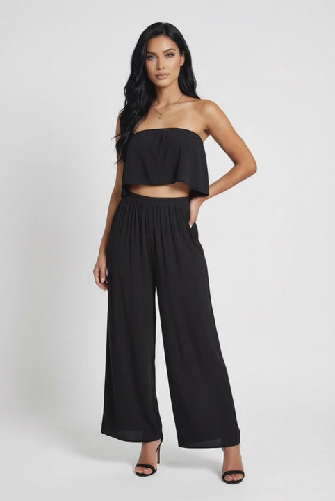 Experience the perfect blend of comfort and elegance with our Seaside Breeze Set. This chic two-piece ensemble features a strapless, flowing top and wide-leg pants, crafted from lightweight, breathable fabric. Ideal for beach days or casual outings, this set ensures you stay cool and stylish under the sun. The set is available in a classic ivory and a vibrant pink, allowing you to choose the colour that best complements your style. Pair it with your favourite sandals and accessories for a complete look.